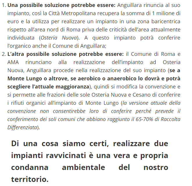 Anguillara, impianto di compostaggio: posizione di sudditanza a Roma e alla Raggi
